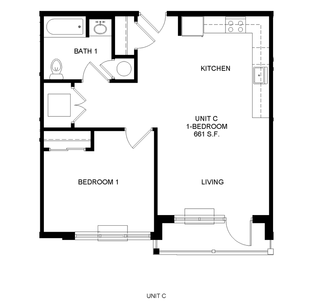 03-C One Bedroom One Bath - Floorplan 1 Apartment Unit: 203Apartment Model: 03-C One Bedroom One Bath$2,5001 Bedroom, 1 Bath, 661 sq ftAvailable Now