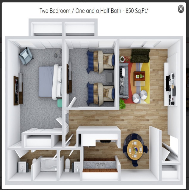 2 Beds, 1.5 Baths, 850 sq ftAvailable NowAvailability Details