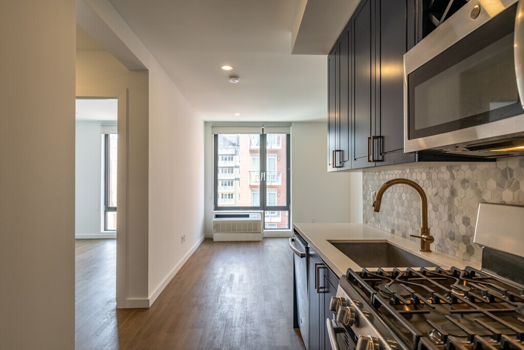 Elevate your lifestyle at the Steel Haus. This luxury rental rises 15 stories at 41-32 27th Street. The building is an exciting blend of design and modern comfort in the heart of Long Island City. A combination of exceptional taste and contemporary styling, the Steel Haus sets the bar high with distinctive interiors and amazing amenities. The 46-unit building will pamper, entertain and graciously satisfy your needs — surrounded by the vibrant LIC vibe. Finely crafted with premium finishes and detailing, the well-sized studio to two bedroom apartments are smartly composed. Standout features include engineered hardwood floors and brick walls in select units. The appealing kitchens are boldly contemporary with satin finish navy blue lacquer cabinetry enhanced with Ceasar- stone countertops, marble backsplash, champagne bronze hardware and stain- less steel appliances. Built-in wine racks in every kitchen complete the culinary experience. The stylish bathrooms feature high-end fixtures and glass shower doors. All units are equipped with washer/dryers for your convenience. Amenities infuse everyday living with the extraordinary. Relax on the rooftop terrace with a private dining area, punctuated by those sweeping views of New York City. Or kick back and socialize with fellow residents and friends in the thoughtfully designed rooftop lounge, complete with a pool table and kitchenette. Refresh and rejuvenate with some outdoor yoga on the roof terrace or find your Zen in the meditation courtyard. Stay on top of your fitness goals in the well- equipped 900 square foot gym, which also includes a changing room. Additional amenities include bike storage. Exceptionally located in the heart of Queensborough Plaza, the neighborhood will entice you with its vibrant restaurant and nightlife scene, along with shopping, cafes, galleries, performance spaces all near by. Find inspiration at the SculptureCenter, one of LIC’s leading contemporary art museums, or in the latest installations at MoMa PS1. Tempt your palate at a range of world-class eat- eries, including the renowned M. Wells Steakhouse and Crescent Grill, a restaurant/art gallery, offering an array of seasonal, sustainable food and drink options with rotating art exhibits on its walls. You will also find easy access to LIC’s serene public spaces, lush riverfront parks and running paths that will become some of your favorite hangouts. Transportation is easily accessible, with the Queensborough Plaza and 39th Avenue subway stations close by. Embrace LIC.