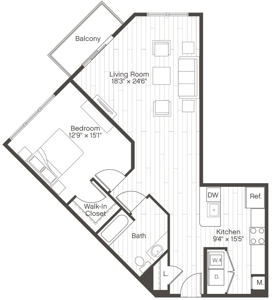 1 Bed, 1 Bath, 714 sq ftAvailable NowModel Gallery