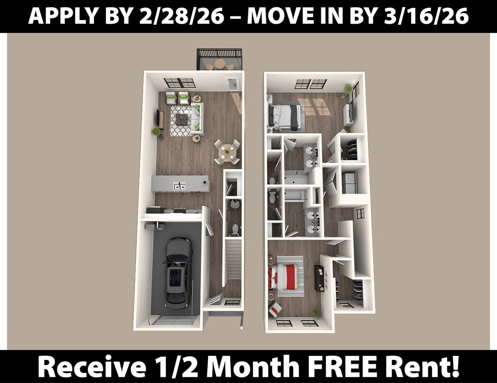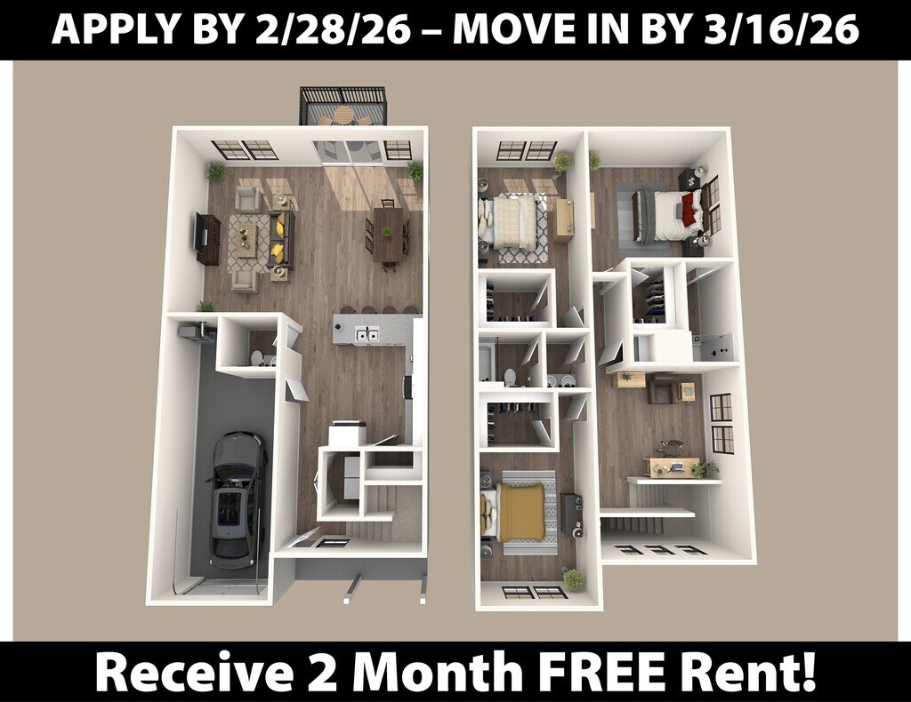 2 Beds, 2.5 Baths, 1659 sq ftAvailable NowModel Gallery