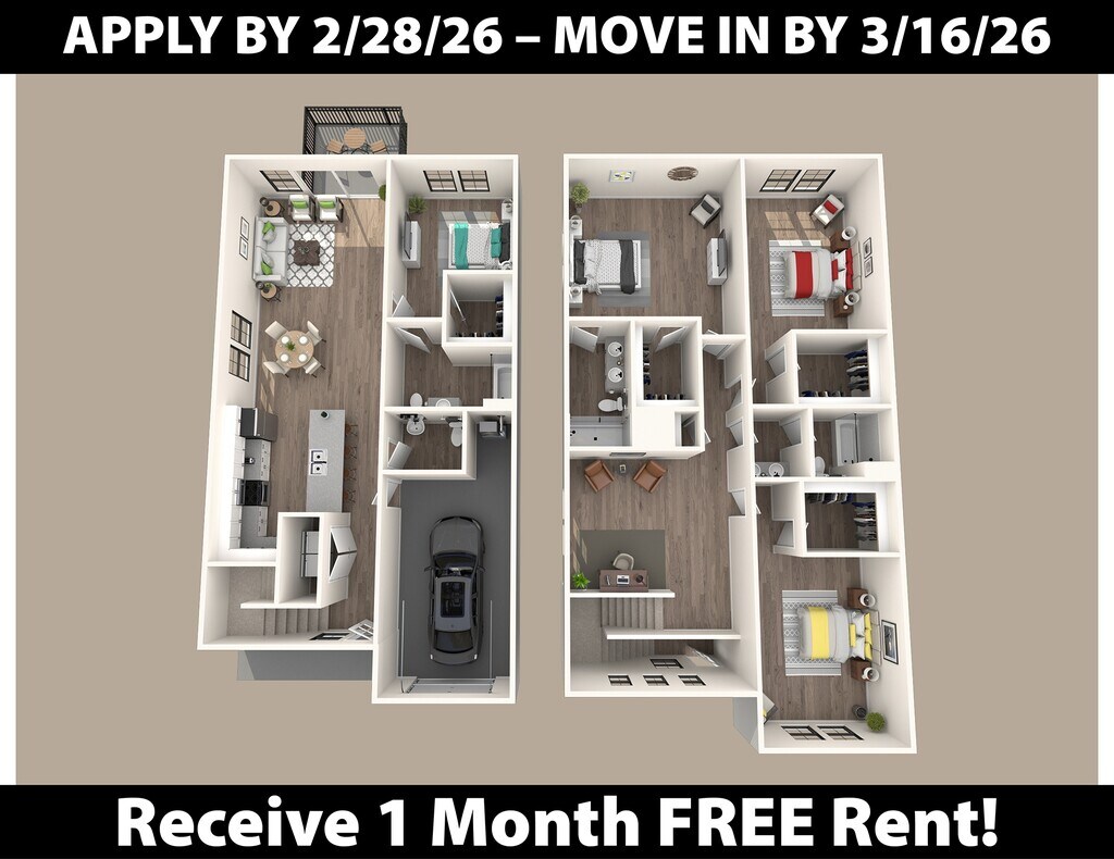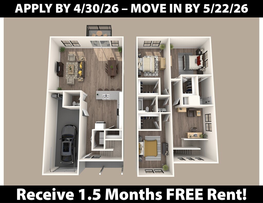 3 Beds, 2.5 Baths, 1659 sq ftAvailable NowCheapest 3 BedroomThis is the cheapest 3 Bedroom at this PropertyModel Gallery