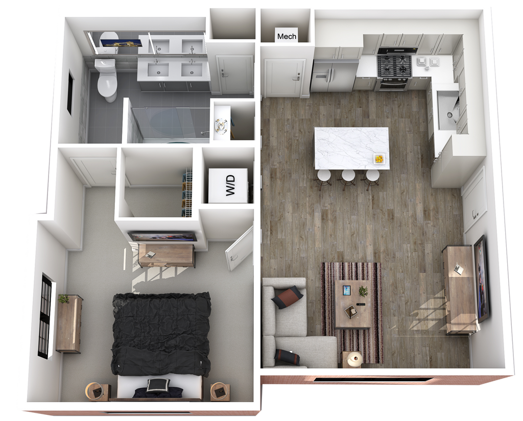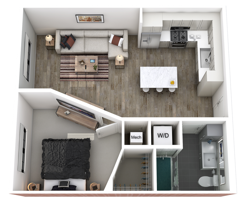 - 1 Bedroom- Dubbel1 Bed, 1 Bath, 542 sq ft- Model Gallery- Floorplans- Availability Details- Availability Date - Unit - Sq Ft - Unavailable - Dubbel - 542 sq ft - Model Amenities and Features- Unique Features- Cable Included