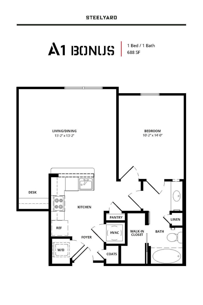 Steelyard offers 1 to 3 Bedroom apartments starting from $1,314 and having 581–1,443 sq ft. Here is the current pricing and availability: