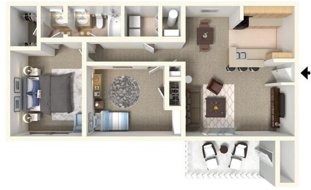 2 Beds, 2 Baths, 934 sq ftAvailable NowModel Gallery