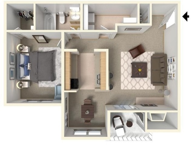 1 Bed, 1 Bath, 680 sq ftModel Gallery