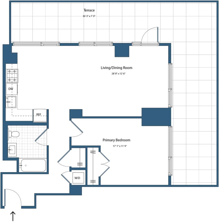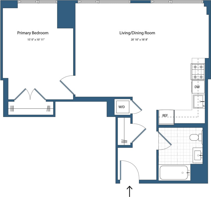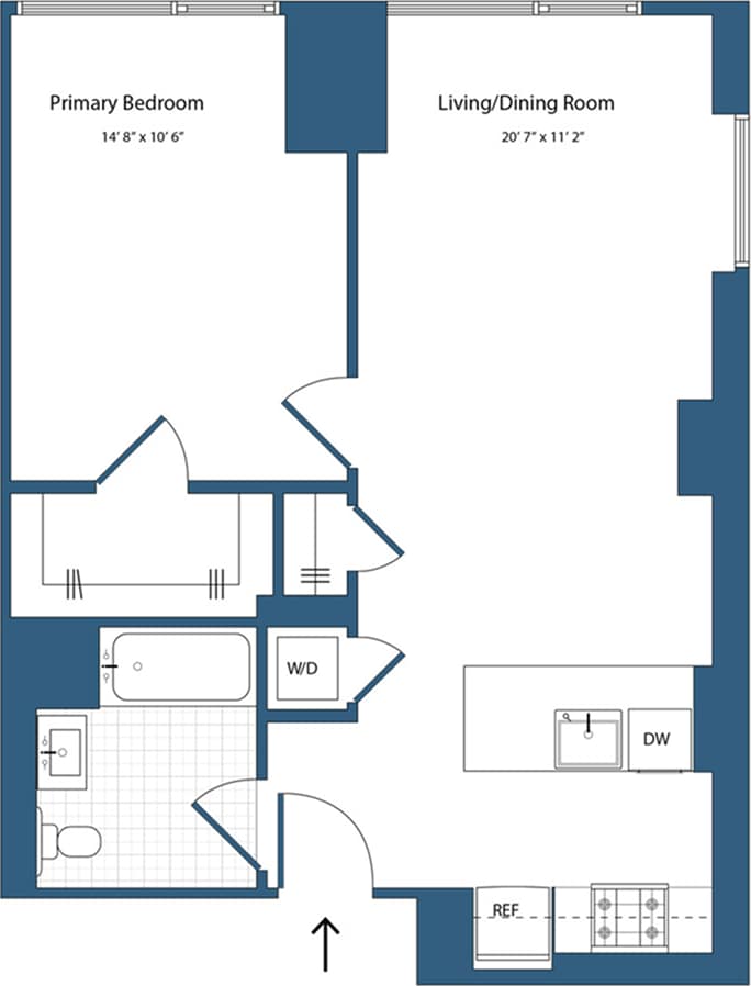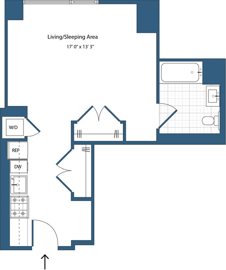 A1 - Floorplan 1 Apartment Unit: 18FApartment Model: A1$2,720Studio, 1 Bath, 639 sq ftAvailable November 22, 2025Floorplan S2