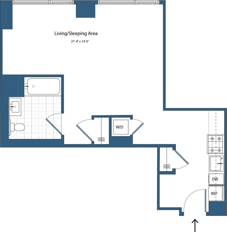 S5 - Floorplan 1 Apartment Unit: 23TApartment Model: S5$2,271Studio, 1 Bath, 486 sq ftAvailable NowFloorplan S8