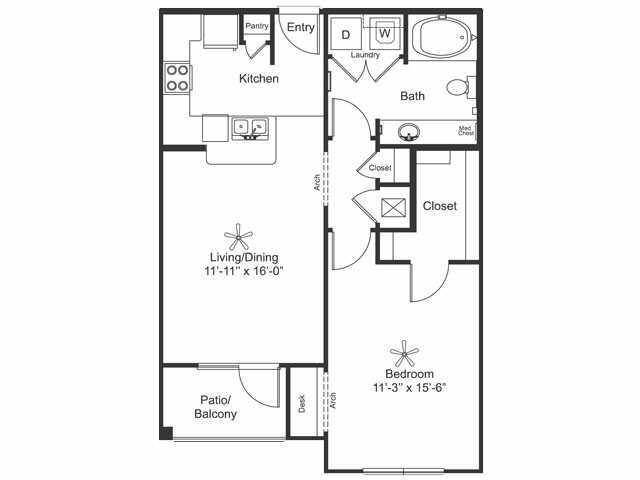 1 Bed, 1 Bath, 841 sq ftAvailable NowLargest 1 BedroomThis is the largest 1 Bedroom at this PropertyModel Gallery