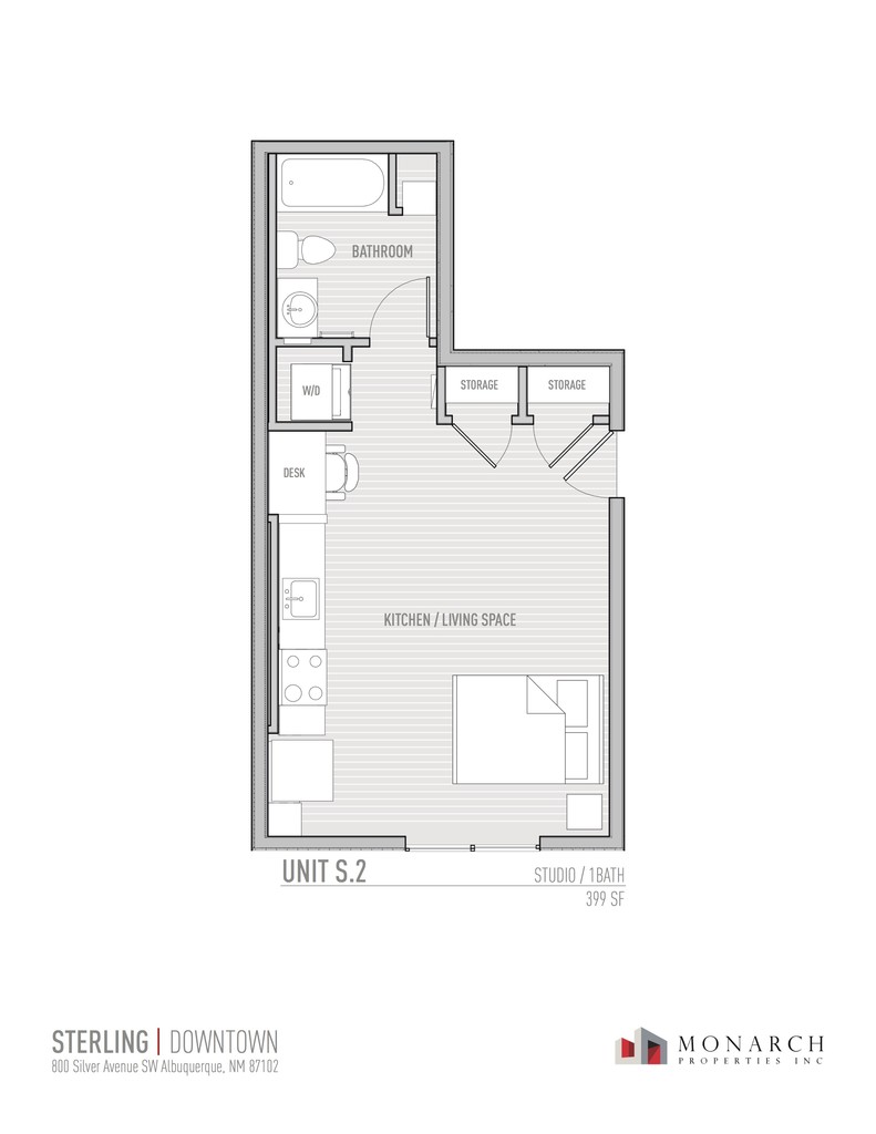 Experience the best in urban living with downtown Albuquerque's newest apartment community. Sterling Downtown has numerous amenities including a rooftop deck with views of downtown and the Sandias, internet lounge, exercise room, indoor bike storage, and a dog wash. Every unit features modern design and a full suite of appliances including a washer and dryer. Sterling Downtown is a short walk to the zoo, downtown growers market, Silver Street Market and all of the dining and entertainment that downtown Albuquerque has to offer. Sterling Downtown delivers the urban lifestyle at an affordable price. Apply today! Tours may be available outside of regular office hours by scheduled appointment. Income restrictions apply, and as per Federal regulations, full-time students are not eligible to apply to tax-credit housing.