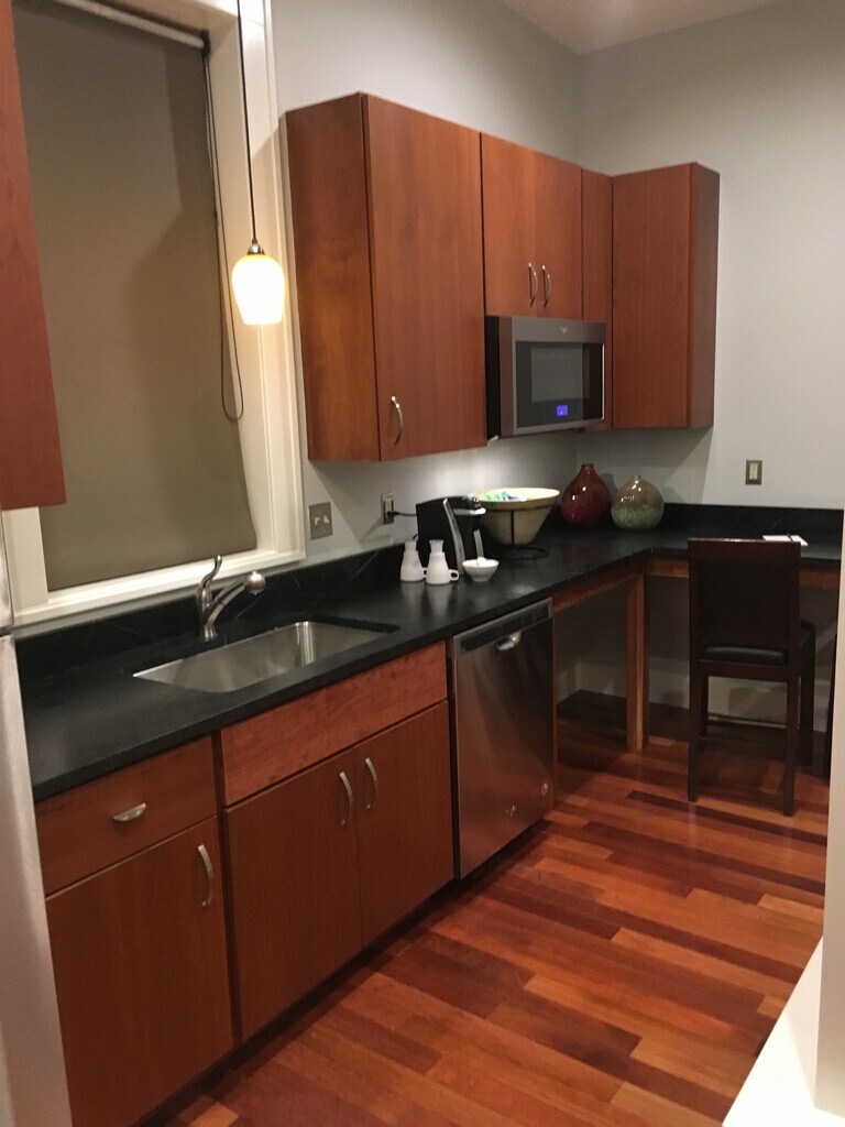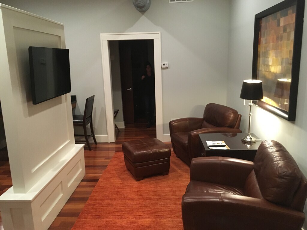 Whether here for a week, a month or a year, Sterling Suites provides the highest quality, spacious, impeccably clean accommodations combined with the best location in Downtown Monroe. We are within walking distance to restaurants, shops and nightlife. Suites in our 150 year old, fully renovated, award winning facility include full kitchen, living room and bedroom areas finished in hardwood, granite and marble. You know what to expect at the national chains near an expressway..... mediocre quality, mundane design, noise and fast food. We invite you to visit and you will find our quality, convenience, character and price are unmatched. Rates vary based on length of stay. Options include all utilities, furnishings, cable/internet and recurrent cleaning.
