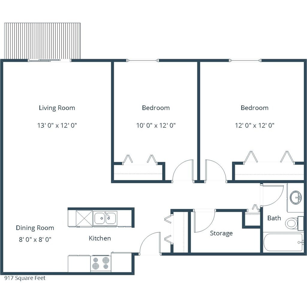 2 Beds, 1 Bath, 870-917 sq ftAvailability Details