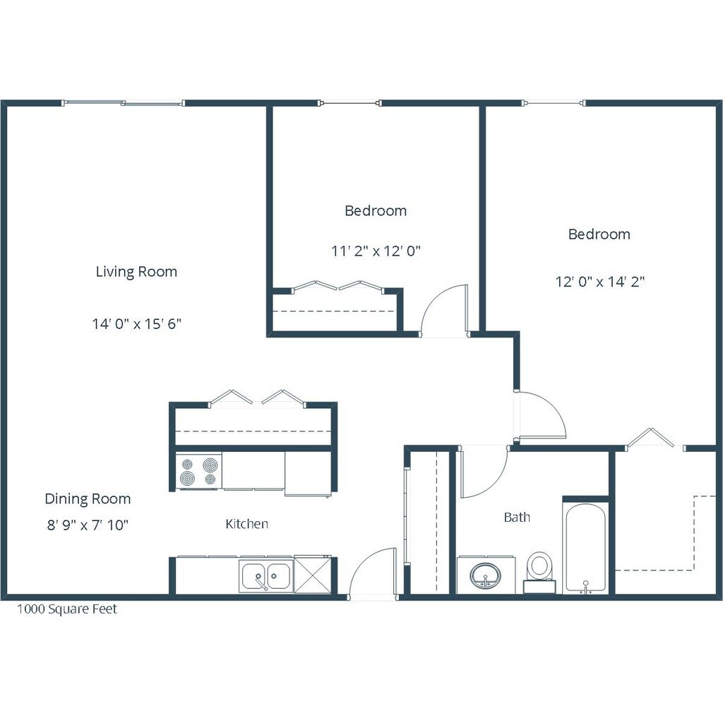 2 Beds, 1 Bath, 884 sq ftAvailability Details