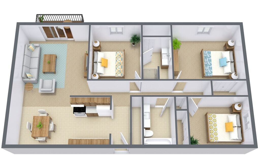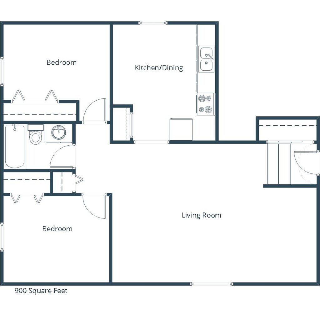 2 Beds, 1 Bath, 900 sq ftModel Gallery