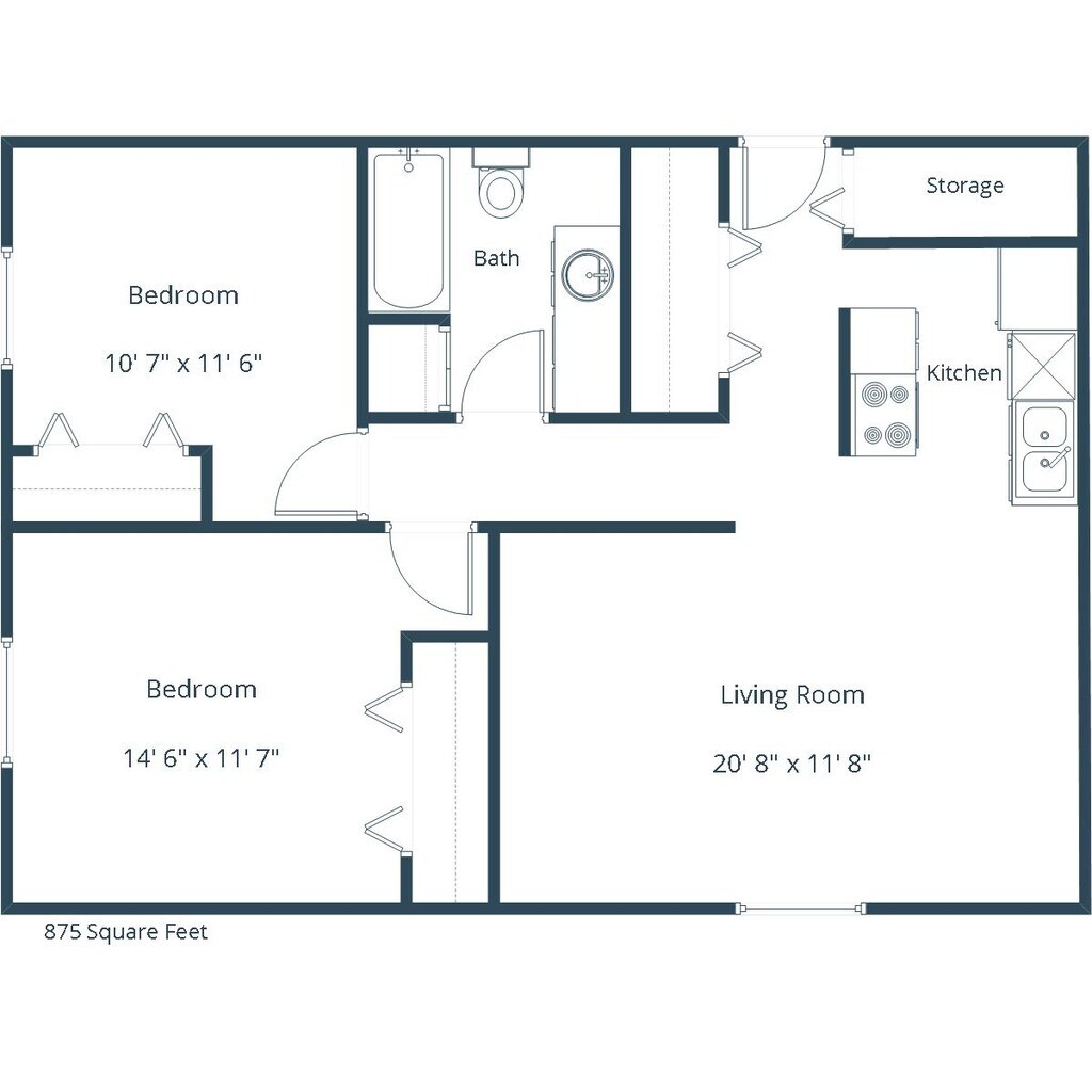 2 Beds, 1 Bath, 875 sq ftAvailability Details
