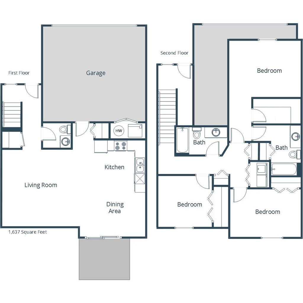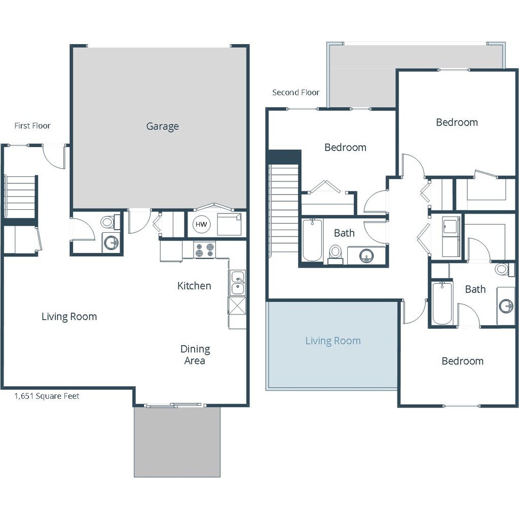 Sterling Pointe Townhome - Three Bedroom - Plan B - Floorplan 1
