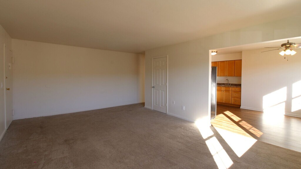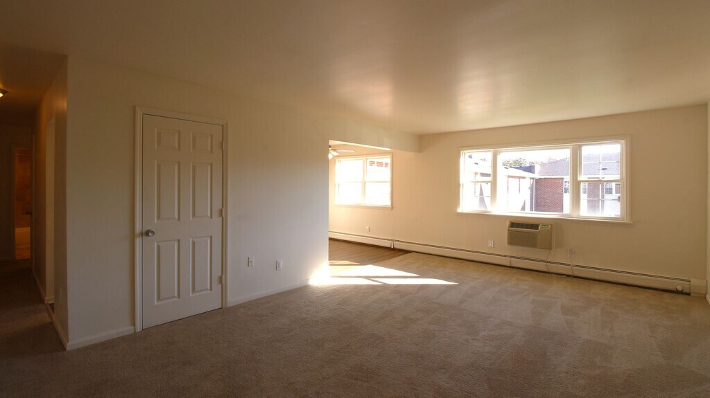 Spacious two-bedroom unit with eat-in-kitchen, bright living area, and ample closet space.