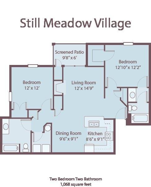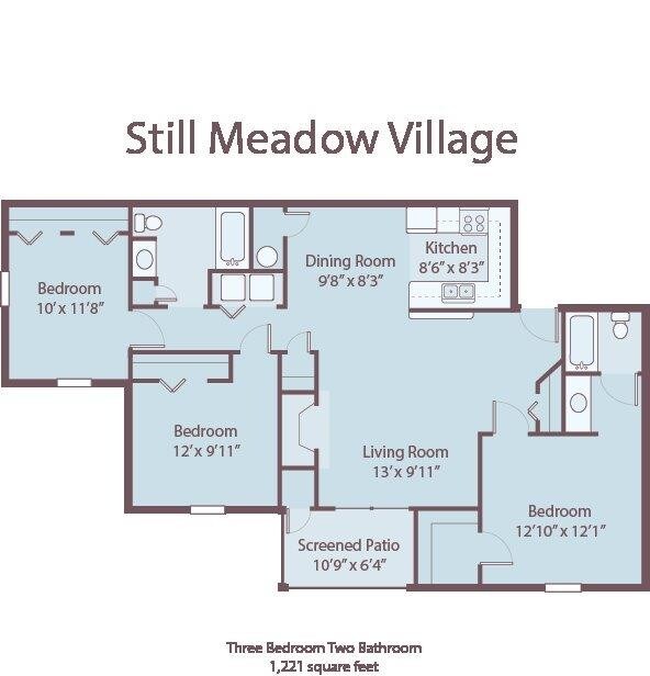 1 Bedroom to 3 Bedroom Apartments at Still Meadow Village currently range from $1,257 to $1,800