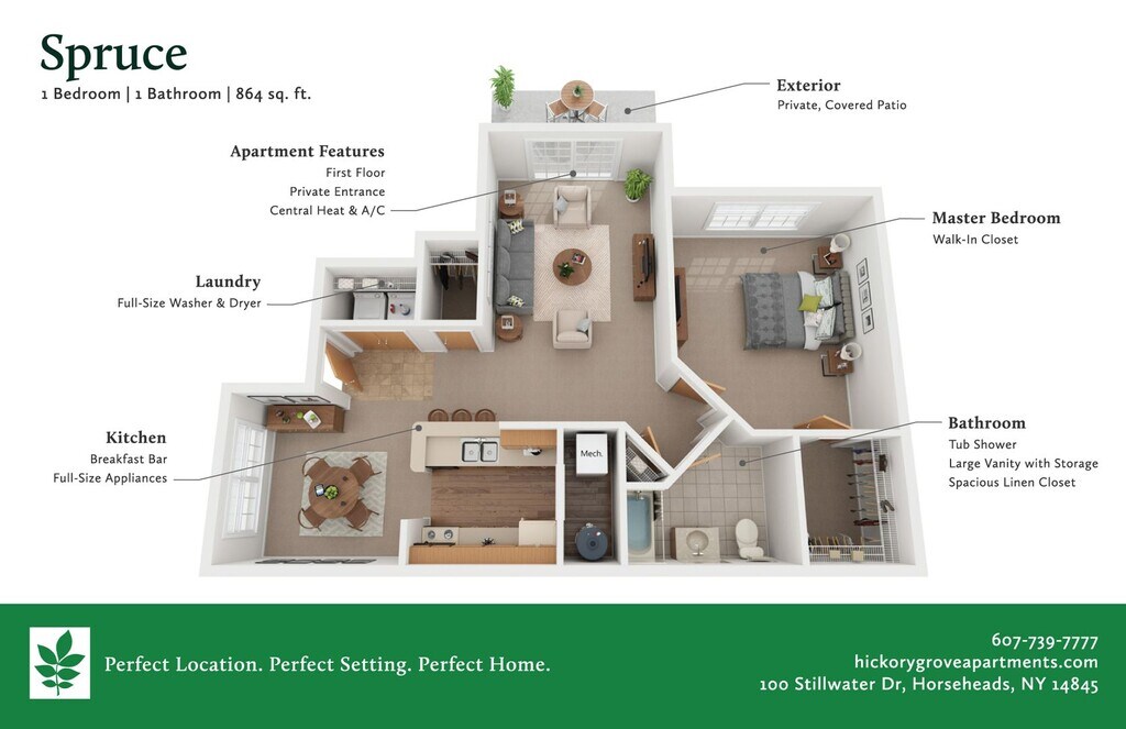 Apartment Model: Spruce$1,5451 Bedroom, 1 Bath, 864 sq ftAvailable February 15, 2026![]()