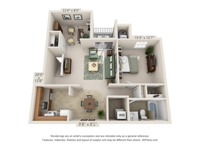 August 10, 2015Its a great 1 bedroom apartment for a couple! Has dining area and living area with an open concept kitchen. The kitchen is not very spacious but very functional (has a dishwasher too). The bathroom is very spacious and has a washer and drier installed and is tucked in neatly in a closet. All 2nd floor apartments have a great deck/balcony.Review from Apartments.com