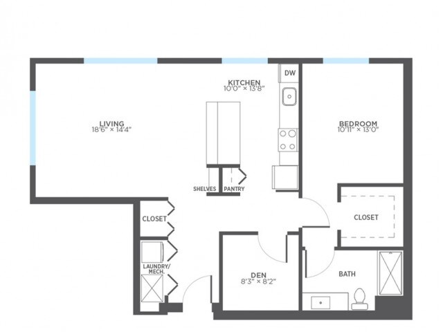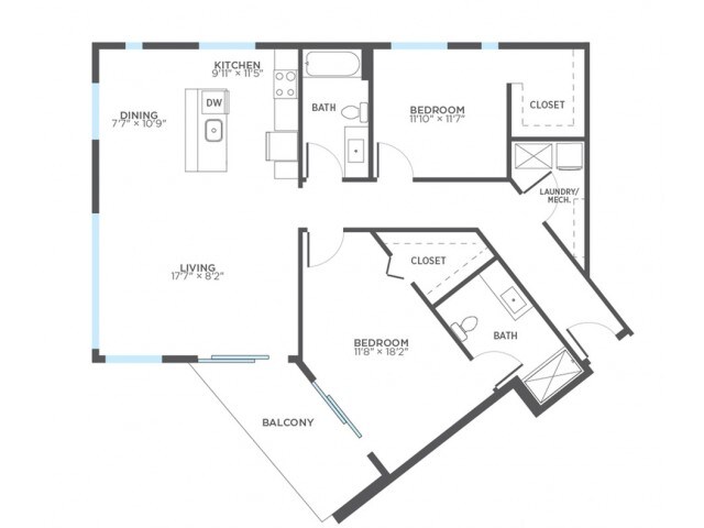 1 Bed, 1 Bath, 709 sq ftAvailable NowModel Gallery