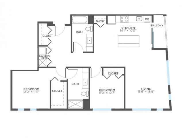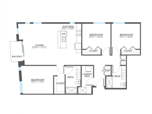 Apartment Model: TWILL$1,5351 Bedroom, 1 Bath, 709 sq ftAvailable Now![]()