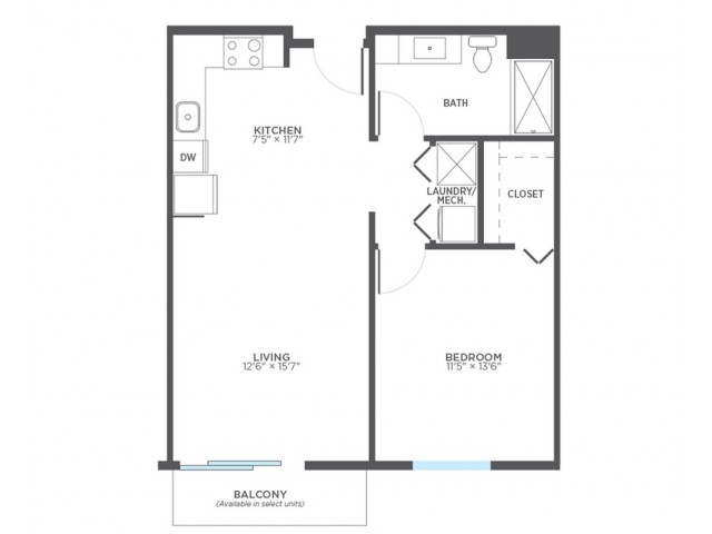 TWILL - Floorplan 2 Apartment Unit: A513Apartment Model: TWILL$1,5351 Bedroom, 1 Bath, 709 sq ftAvailable NowHABERDASHER