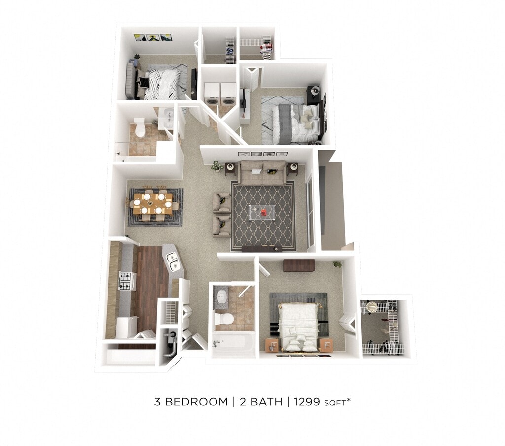 3 Beds, 2 Baths, 1299 sq ftAvailable Dec 19Model Gallery
