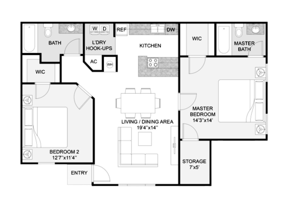 3 Beds, 2 Baths, 1196 sq ftAvailable NowModel Gallery
