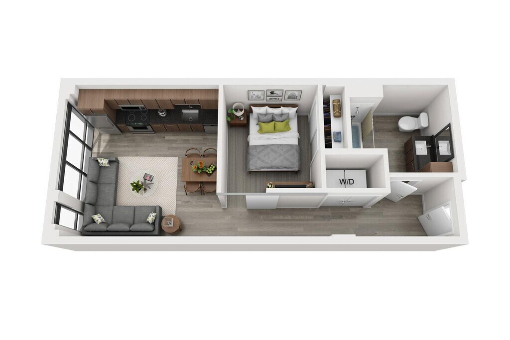A1 - Floorplan 9 Apartment Unit: 821Apartment Model: A1$2,262Studio, 1 Bath, 443 sq ftAvailable January 2, 20261 Bedroom