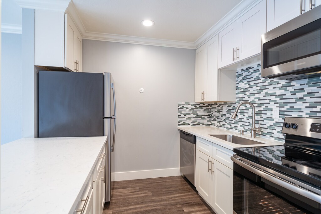 Our curated collection of studios, one, and two-bedroom luxury homes is meant to infuse your daily life with comfort and convenience. Many kitchens feature stainless-steel appliances and easy-to-clean counter tops. The living areas are inviting and bright, while the bathrooms are both functional and elegant. Moreover, we made sure to offer select units which include private patios or balconies, ceiling fans, generous closets, and in-unit washers and dryers for a hassle-free experience. Outside your new home, you will discover just as many perks. Theres a swimming pool waiting to help you cool down, as well as a fitness center that can help meet your workout needs. Our community also provides on-site management and maintenance services, recycling, covered parking, and additional laundry facilities that further streamline your daily schedule and make your renting experience a pleasure.