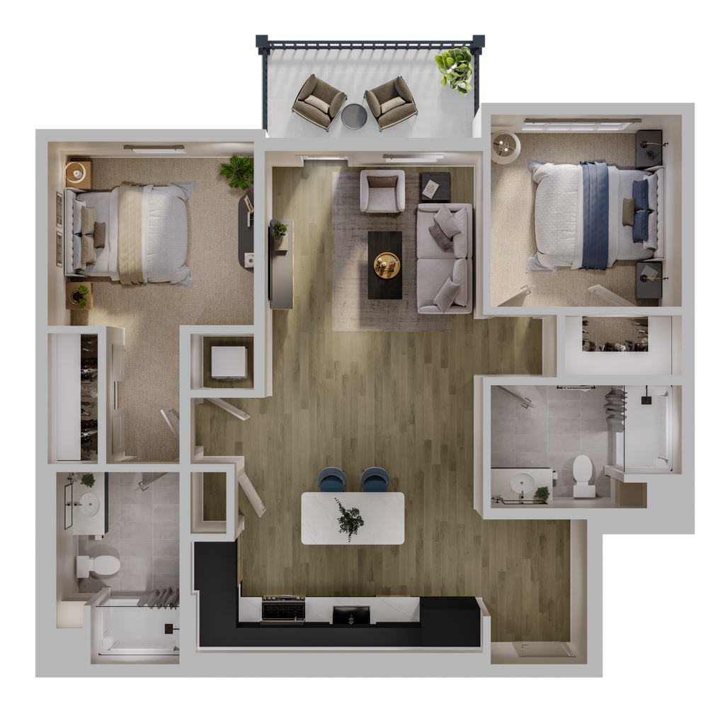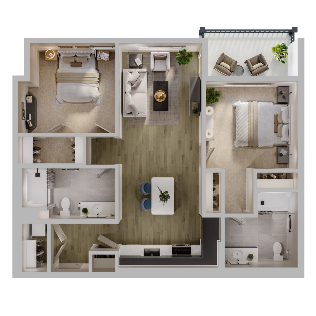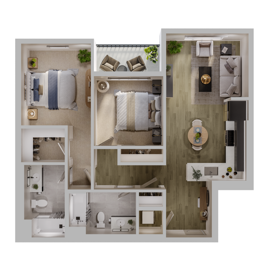 2 Beds, 2 Baths, 1007 sq ftAvailable NowModel Gallery