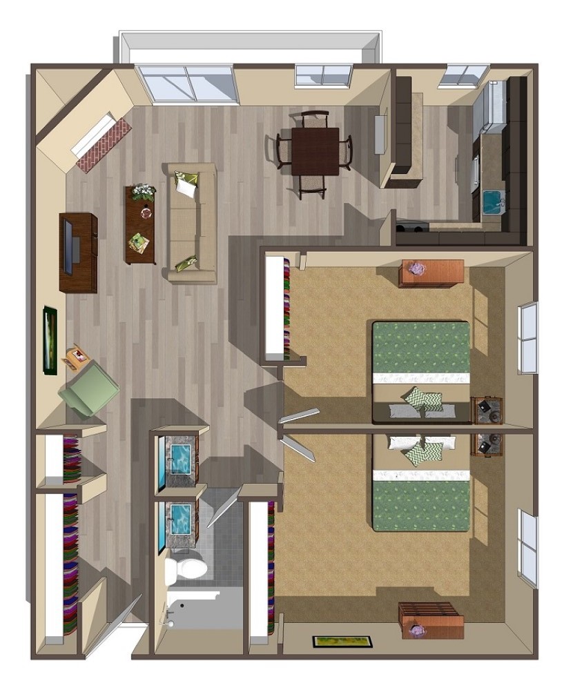 2 Beds, 1 Bath, 1015 sq ftAvailable NowModel Gallery