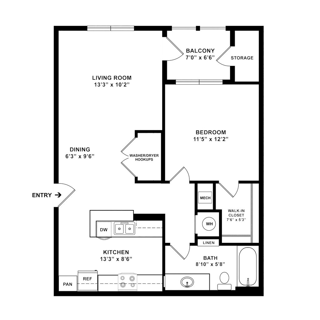 1 Bed 1 Bath - Floorplan 1 ![]()