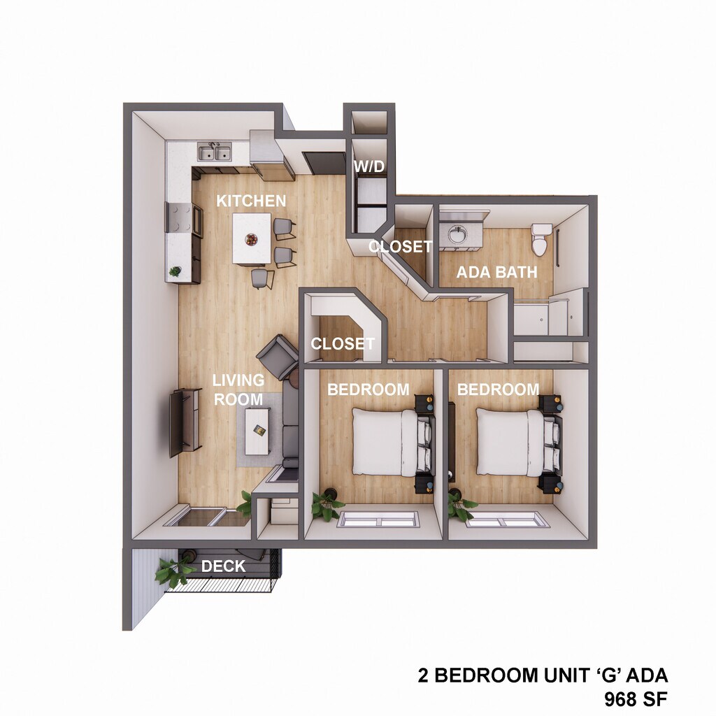 2 Beds, 1 Bath, 917-968 sq ftPlus FeesAvailable Mar 1, 2026Model Gallery