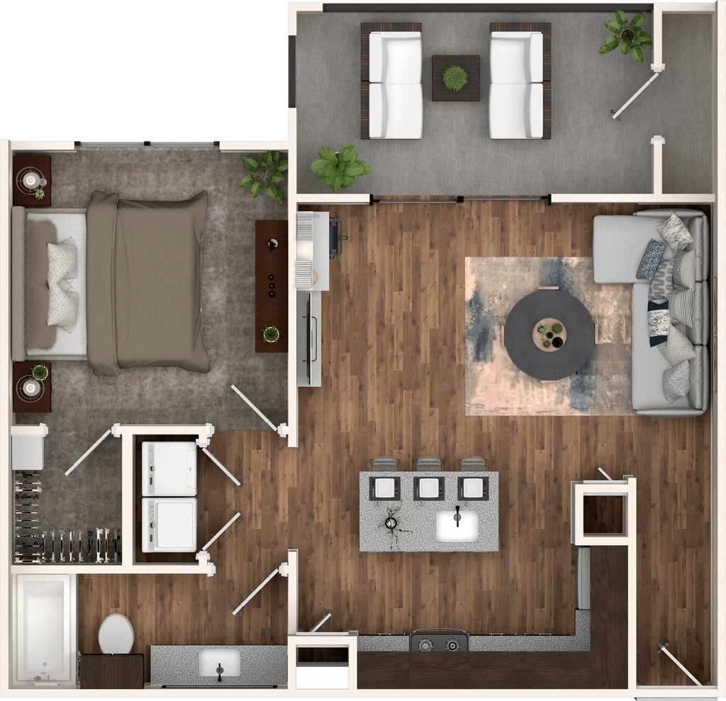 1 Bed, 1 Bath, 695 sq ftModel Gallery