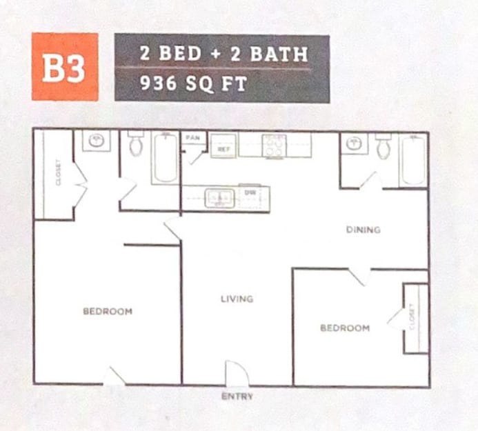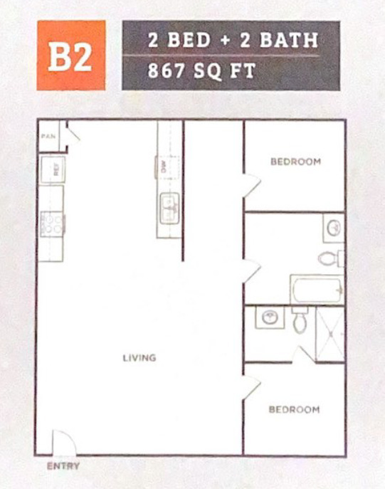 Apartment Model: 2 BD/2 BAFrom $1,5022 Bedroom, 2 Bath, 867-936 sq ftAvailable NowFloorplansPhotos![]()