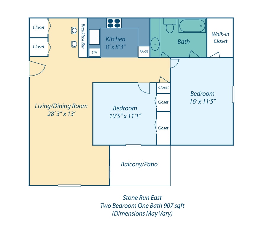 Stone Run East offers 1 to 3 Bedroom apartments starting from $2,240 and having 659–1,212 sq ft. Here is the current pricing and availability: