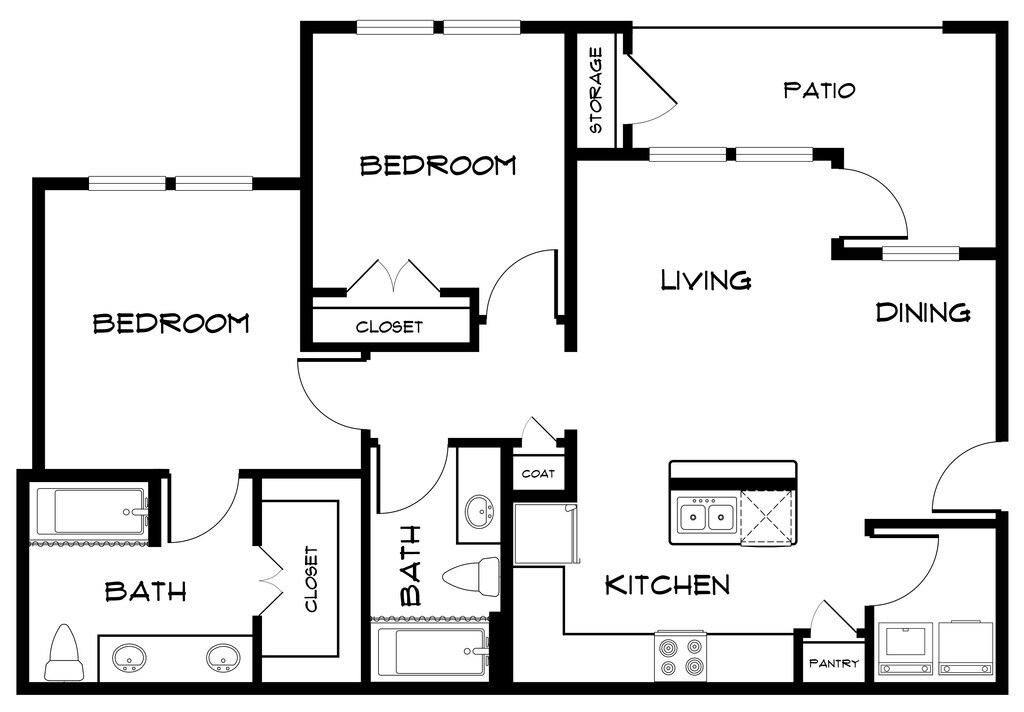 Apartment Model: B12 Bedroom, 2 Bath, 990 sq ftUnavailable![]()