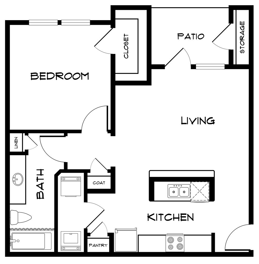 Apartment Model: A31 Bedroom, 1 Bath, 775 sq ftAvailable March 1, 2027![]()