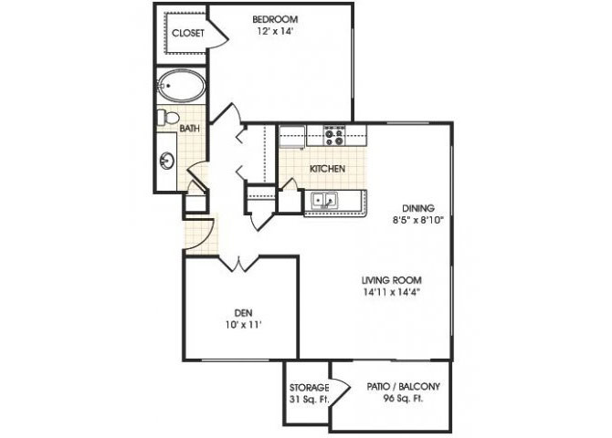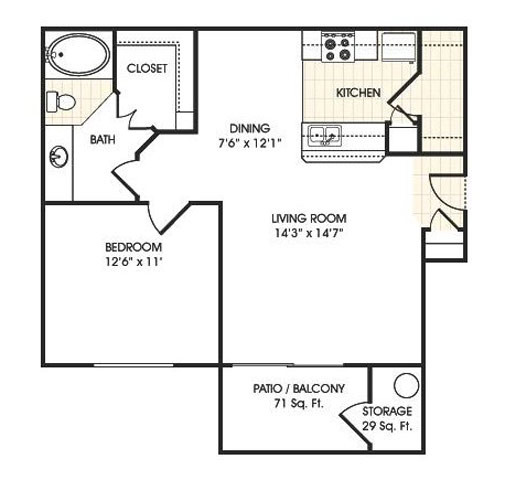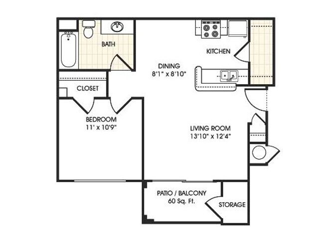 Apartment Model: Tranquility$1,5691 Bedroom, 1 Bath, 796 sq ftAvailable February 10, 2026Floor plans are artist's rendering. All dimensions are approximate. Actual product and specifications may vary in dimension or detail. Not all features are available in every rental home. Prices and availability are subject to change. Base rent is based on monthly frequency. Additional fees may apply, such as but not limited to package delivery, trash, water, amenities, etc. Deposits vary. Please see a representative for details.
