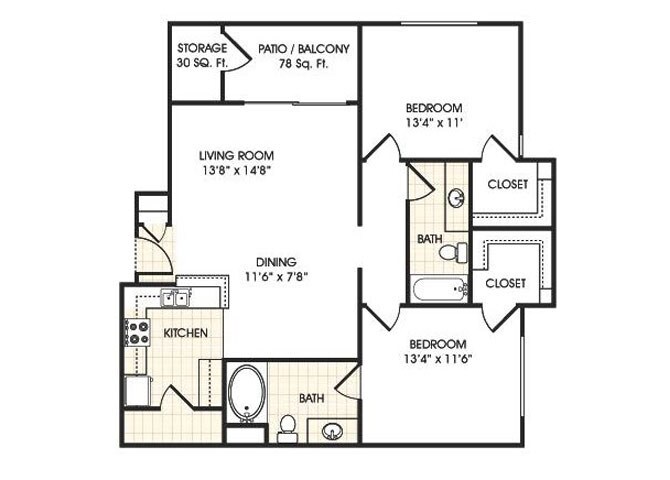 1 Bed, 1 Bath, 916 sq ftLargest 1 BedroomThis is the largest 1 Bedroom at this PropertyModel Gallery