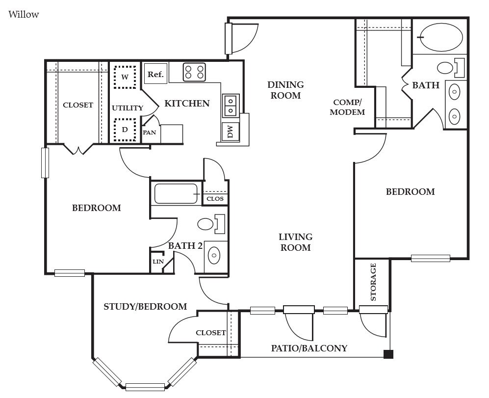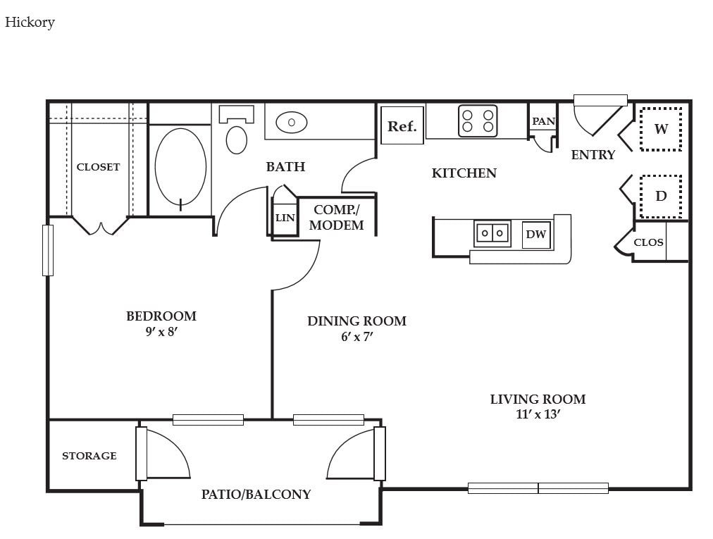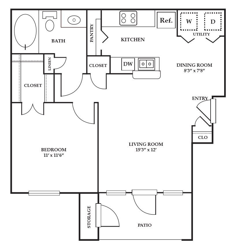 Apartment Model: A1From $9801 Bedroom, 1 Bath, 642 sq ftAvailable Now![]()