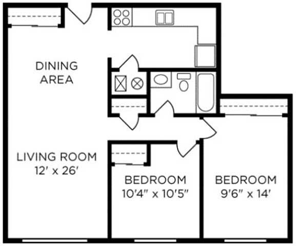 2 Beds, 1 Bath, 880 sq ftModel Gallery