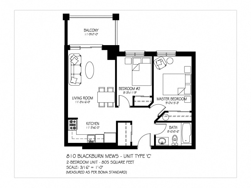 Type C - Floorplan Apartment Unit: 314Apartment Model: Type C$1,9952 Bedroom, 1 Bath, 805 sq ftAvailable April 30, 2026