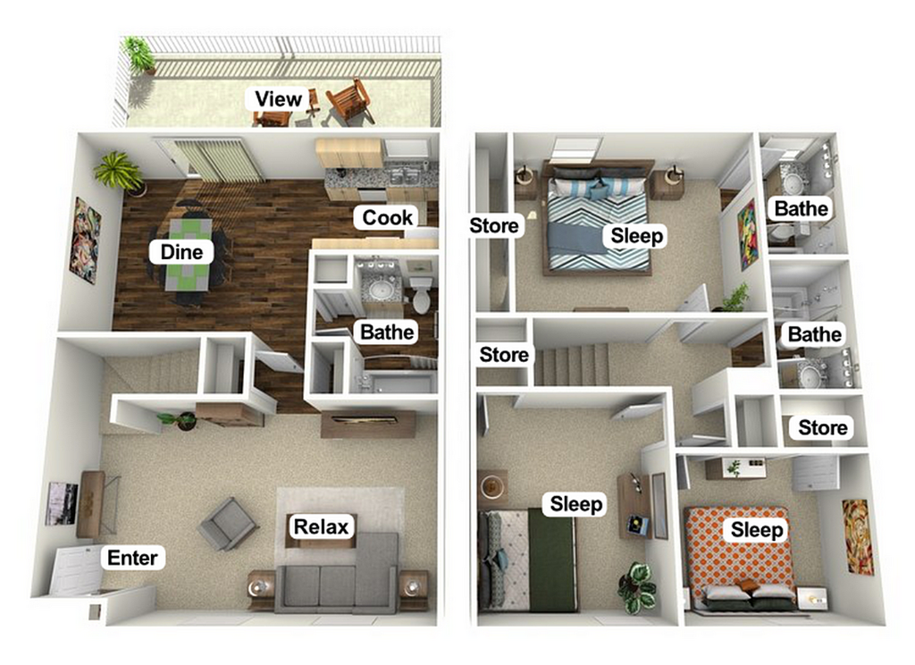 3 Beds, 2.5 Baths, 1276 sq ftAvailable NowModel Gallery