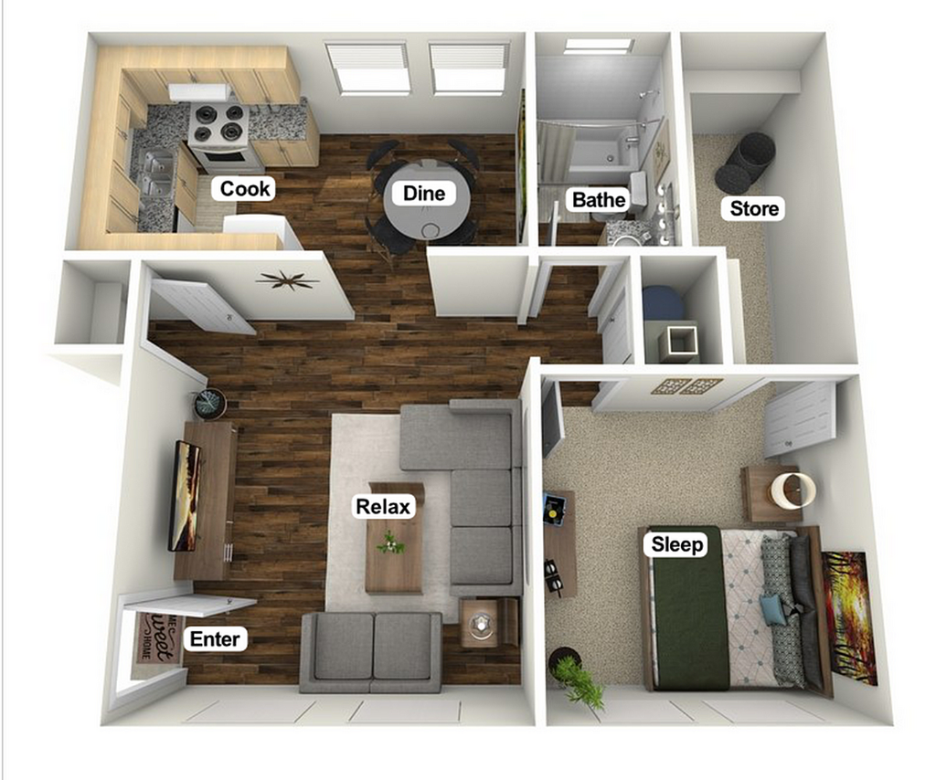 1 Bed, 1 Bath, 726 sq ftAvailable NowModel Gallery