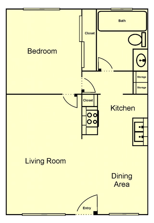 1 Bedroom, 1 Bath - XLarge Downstairs - Floorplan 1 2 Bedrooms