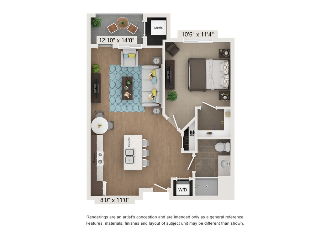 1 Bed, 1 Bath, 647 sq ftAvailable NowModel Gallery
