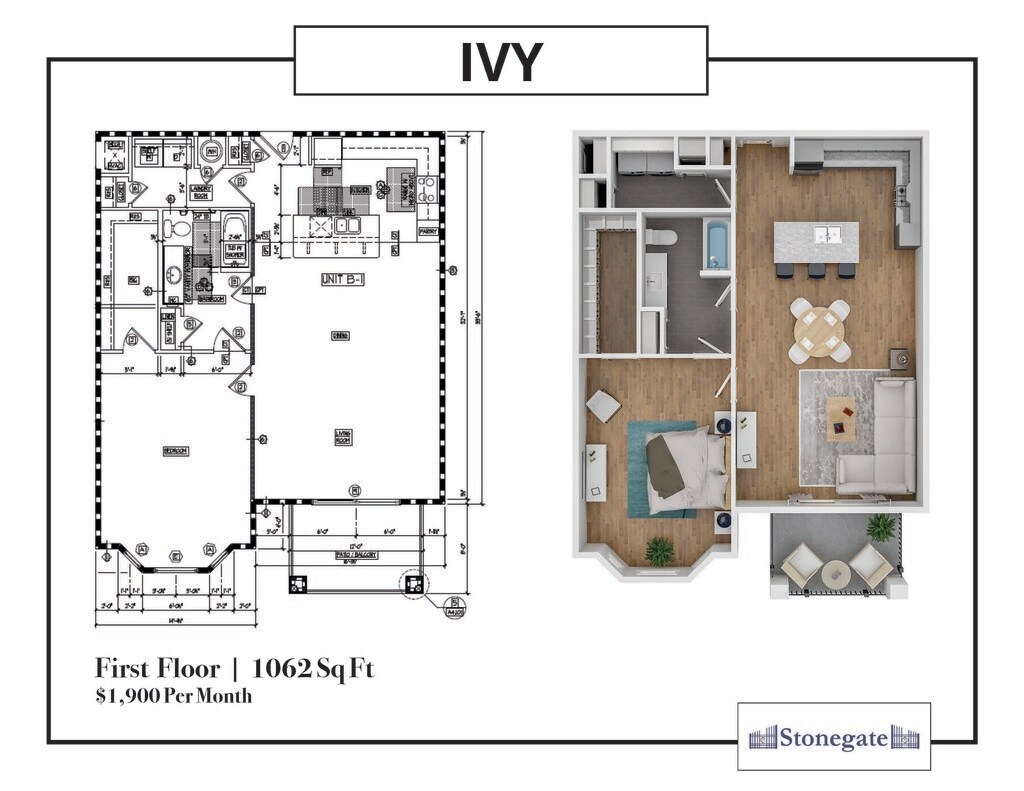 Apartment Model: IVYFrom $1,9001 Bedroom, 1 Bath, 1062 sq ftUnavailableIVY - Floorplan 1 IRONWOOD